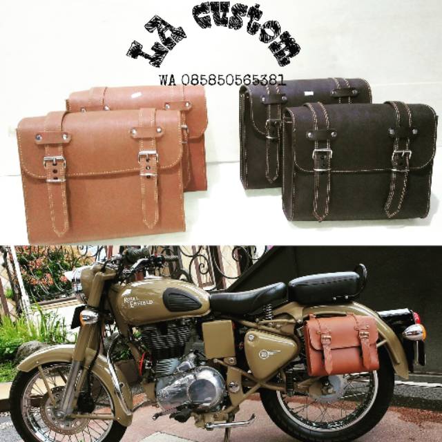 Jual ready stok tas royal enfield side bag leather tas motor kulit dengan harga rp650 000 dari toko online rey leather work kota bandung.
