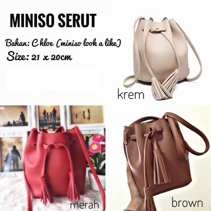 Hingga kini tas miniso bisa dibilang tetap jadi tren di indonesia. Tas serut yang saya buat digunakan sebagai tempat penyimpanan beberapa buah flash disk. Tas miniso terbuat dari bahan kulit sintetis dan juga kanvas. Tidak hanya goodie bag tas serut juga sudah menjadi salah satu model tas wanita yang cocok digunakan oleh kalangan muda.