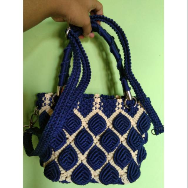 Tas tali kur warna navy. Ayo manfaatkan tali sisa tali kurnya. Tali ini tali sisa yang saya sambung2 sampe jadi kayak gini. Kaum hawa terutama ibu ibu sangat kepincut dengan kerajinan tangan satu ini. Alasannya cukup simple banyaknya pilihan warna dan motif yang cantik serta harganya yang tergolong ramah dompet.